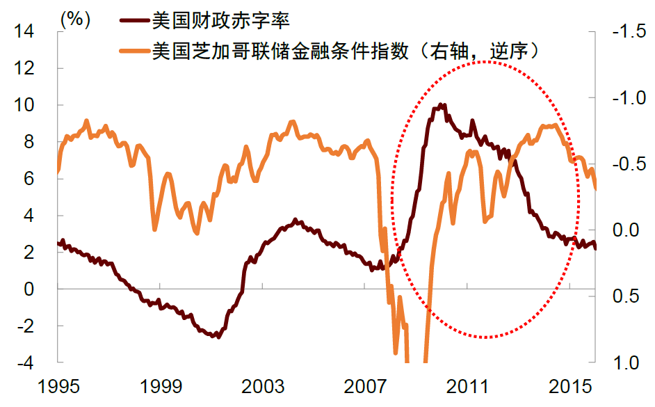 注:芝加哥联储金融条件指数正值表示金融状况比平均水平紧张,负值表示金融状况比平均水平宽松