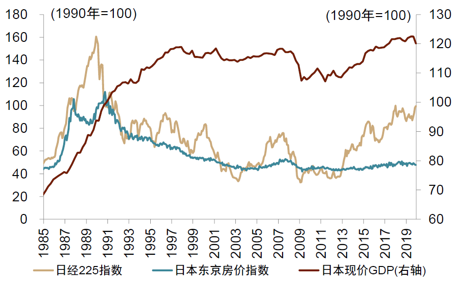 上面我们复盘了美国金融周期下行阶段的“水牛”行情,作为对比,我们也看看日本金融周期下半场的股市走势。总体而言,日本金融周期下半场的经济和股市修复都明显弱于美国可比时期。